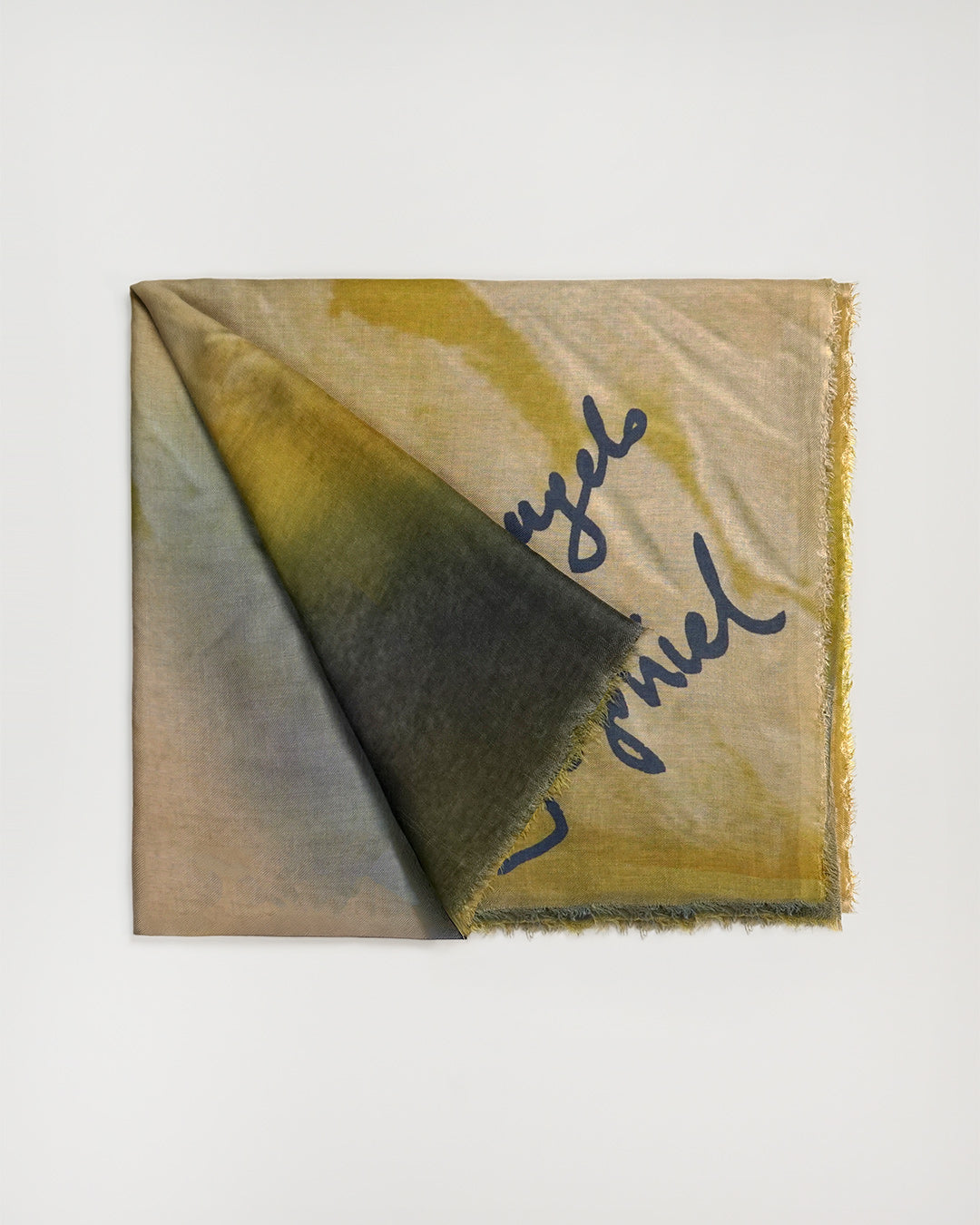 Lo scialle Arcangelo Jophiel irradia saggezza, bellezza e illuminazione interiore. Le sue vibranti tonalità dorate, illuminate da una luce cangiante, richiamano il ruolo dell'Angelo come guida verso chiarezza e ispirazione. Indossare questo capo significa portare con sé un ricordo di gioia e illuminazione, in ogni stagione dell'anno.