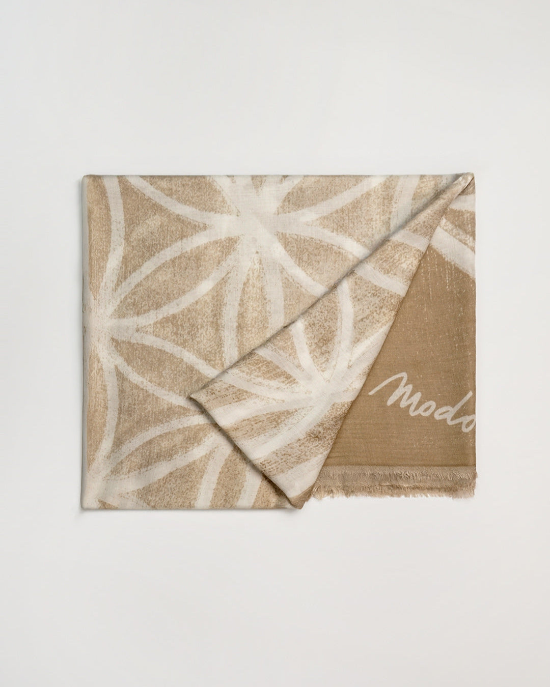 Il Fiore della Vita, uno dei simboli più antichi e universali di armonia, equilibrio e creazione, è reinterpretato in questo scialle dalla delicata tonalità beige. La sua geometria evoca il legame con i cicli della vita e con l'infinito, donando eleganza e significato a ogni momento.